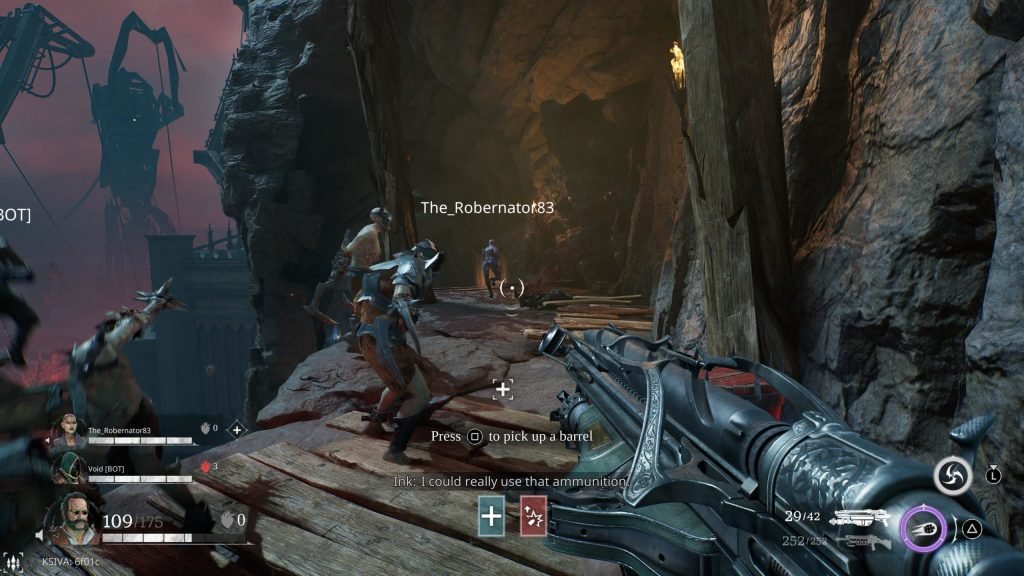 بازیکن میتواند سلاحها را با حالتهای ثانویه ارتقا دهد، مثلاً افزودن نارنجکانداز به لانچر نیزه یا شلیک برق با SMG. این ارتقاها حس پیشرفت واقعی ایجاد میکنند.